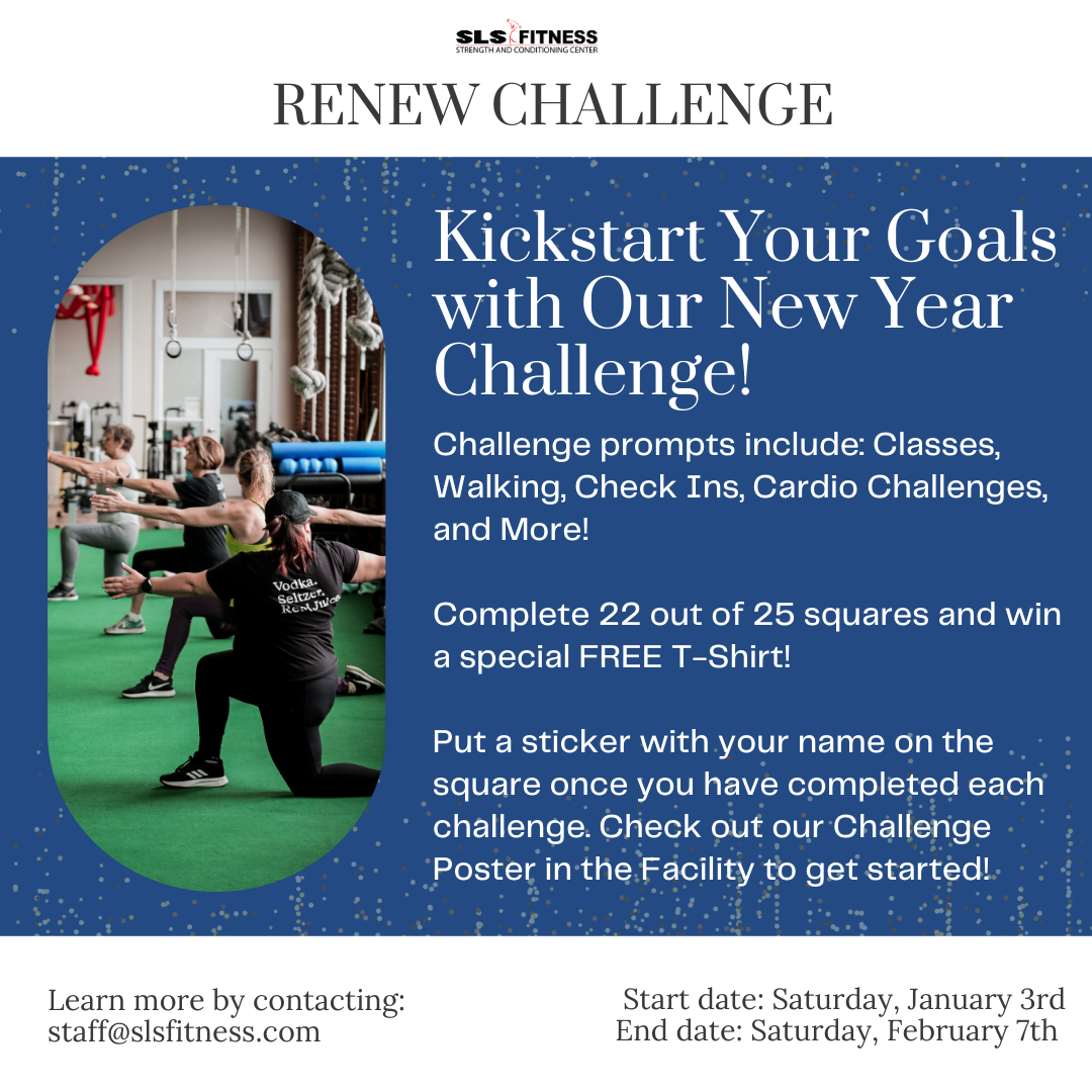 Challenge prompts include: Classes, Walking, Check Ins, Cardio Challenges, and More!