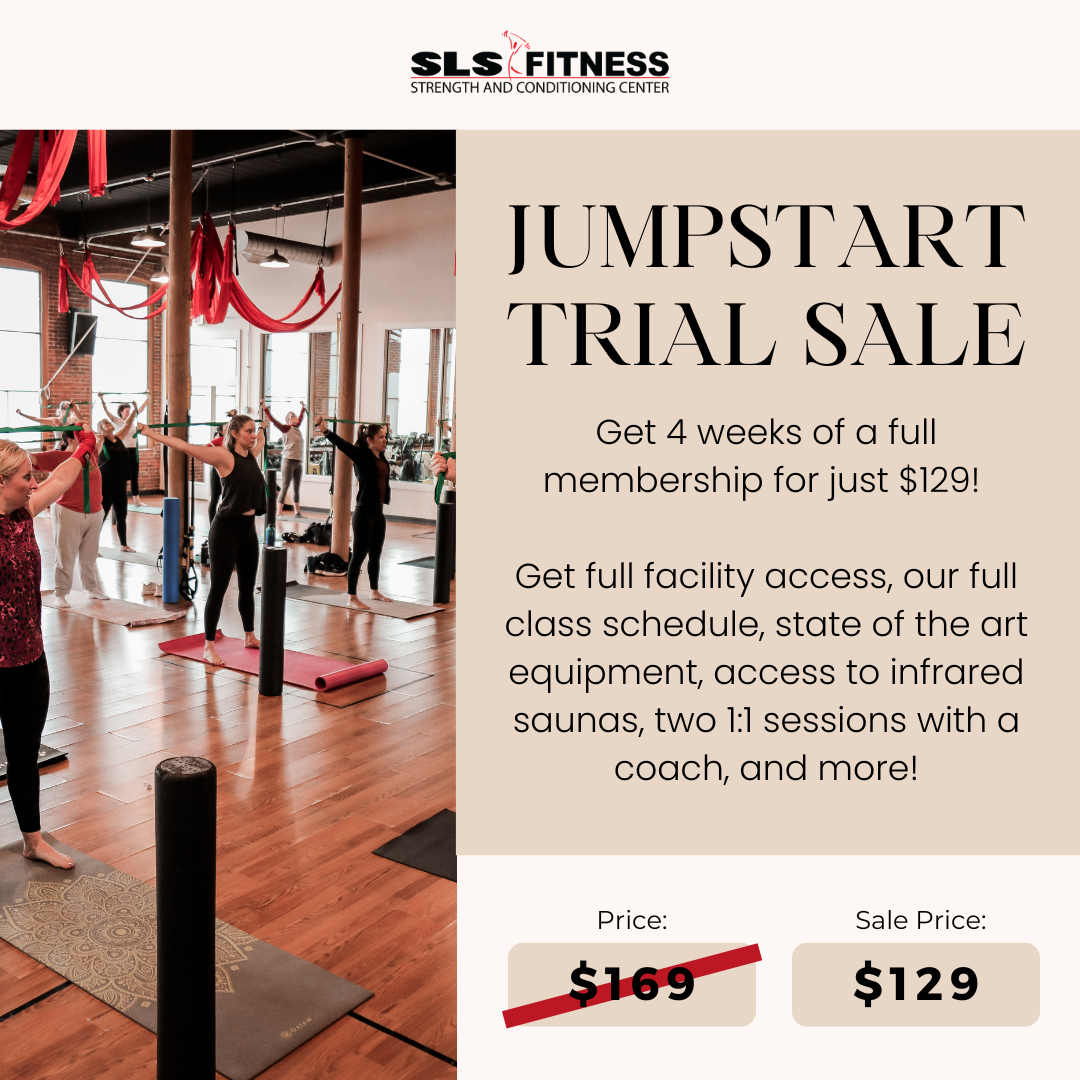 Get 4 weeks of a full membership for just $149! Get full facility access, our full class schedule, state of the art equipment, access to infrared saunas, two 1:1 sessions with a coach, and more!