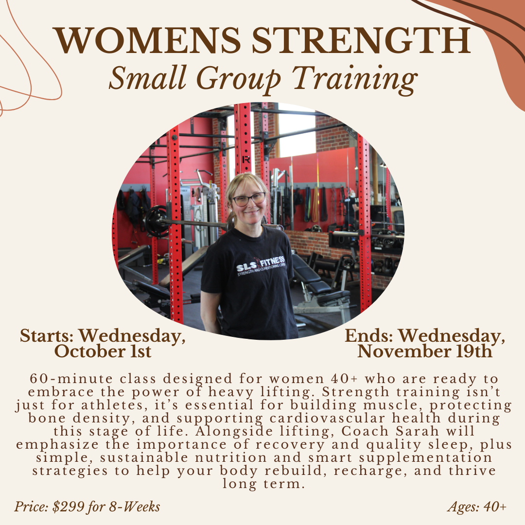 60-minute class designed for women 40+ who are ready to embrace the power of heavy lifting. Strength training isn’t just for athletes, it’s essential for building muscle, protecting bone density, and supporting cardiovascular health during this stage of life. Alongside lifting, Coach Sarah will emphasize the importance of recovery and quality sleep, plus simple, sustainable nutrition and smart supplementation strategies to help your body rebuild, recharge, and thrive long term.